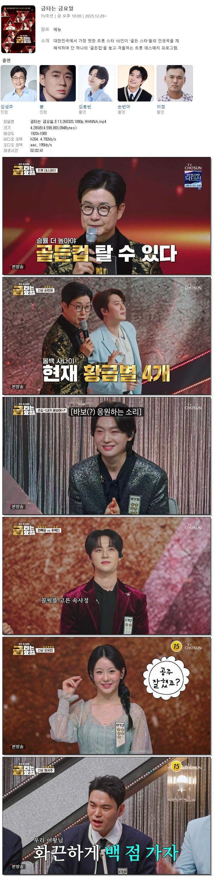 [TV조선] 금타는 금요일.E13.260320.1080p.WANNA[김용빈, 춘길]