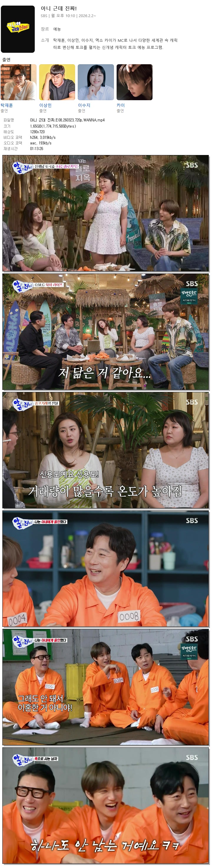 [SBS] 아니 근데 진짜.E08.260323.720p.WANNA[강소라, 이수근].mp4