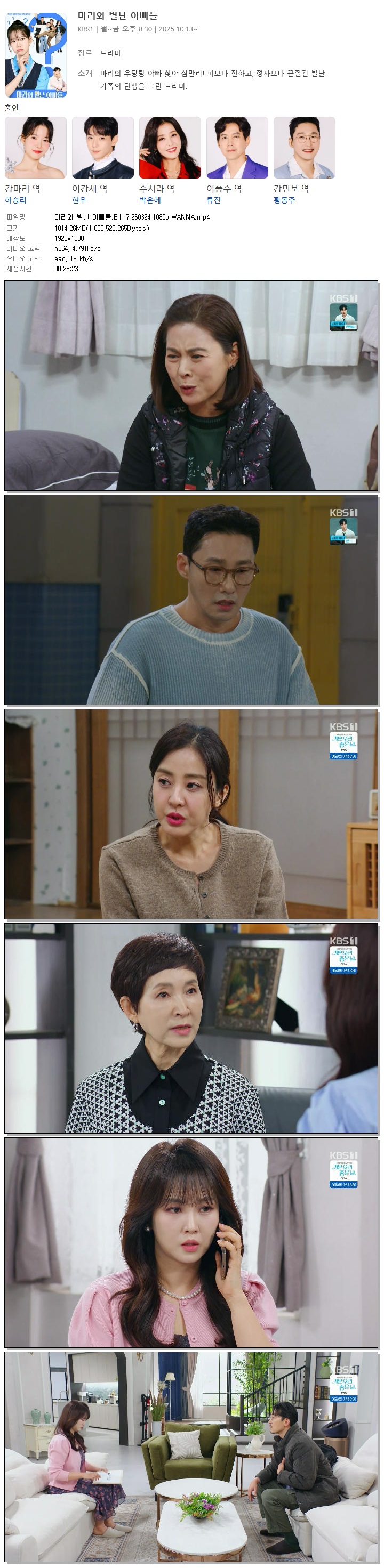 [KBS1] 마리와 별난 아빠들.E117.260324.1080p.WANNA[하승리, 현우].mp4