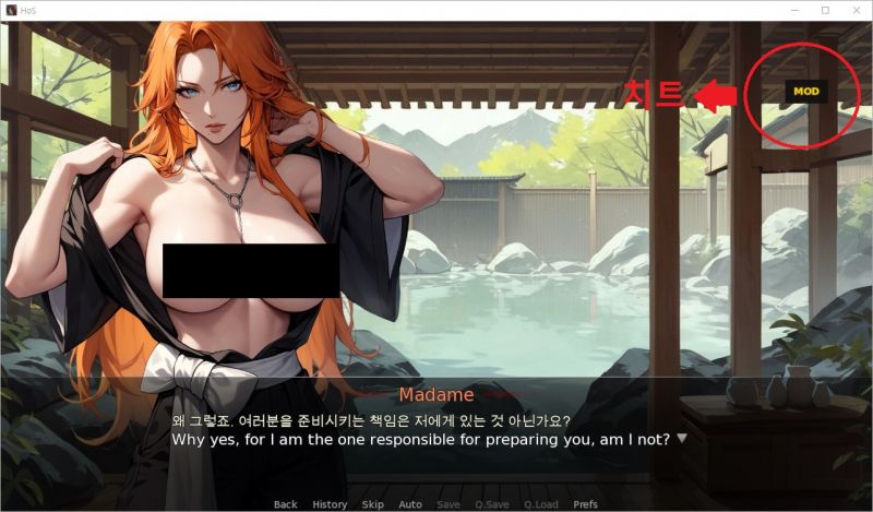 무검열버전은 갤러리 리플레이 모두 해제 되어 있고요 게임을 시작하면 화면에 mod 버튼이 뜹니다.그건 치트를 할수 있는 것이고 항상 화면에 따라다닙니다.