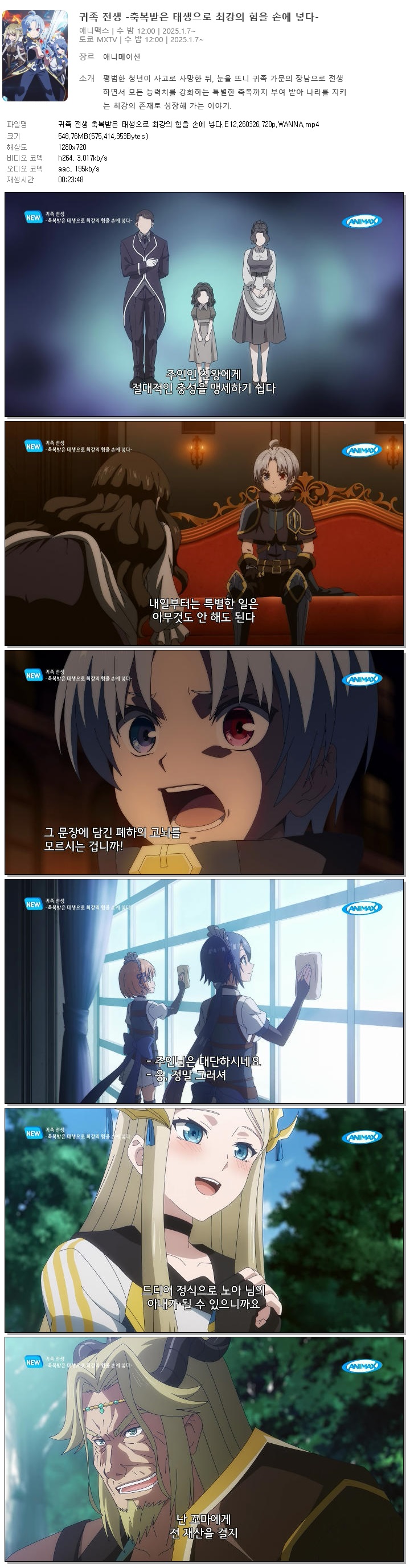 귀족 전생 축복받은 태생으로 최강의 힘을 손에 넣다.E12.260326.720p.WANNA
