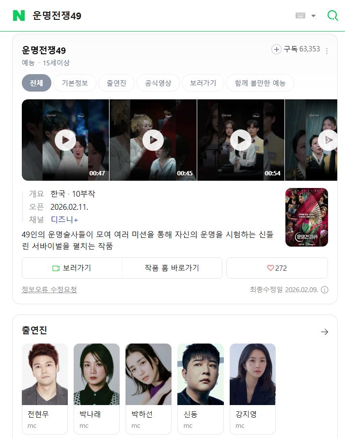 1080p 운명전쟁49 E01-E10 통합1 전현무 박나래 박하선 [완결]