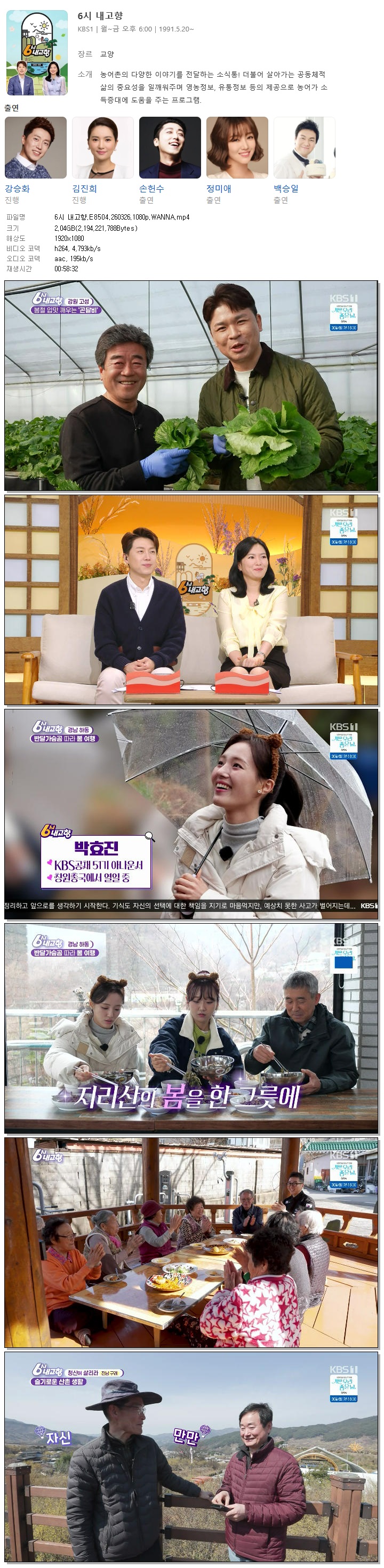 [KBS1] 6시 내고향.E8504.260326.1080p.WANNA[강승화, 김진희]