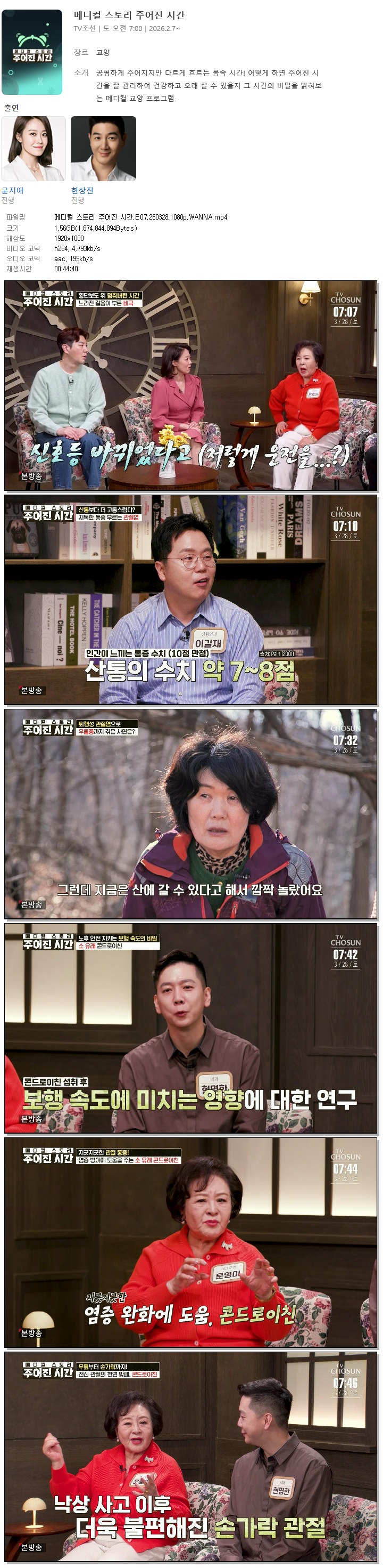 [TV조선] 메디컬 스토리 주어진 시간.E07.260328.1080p.WANNA[문지애, 한상진]