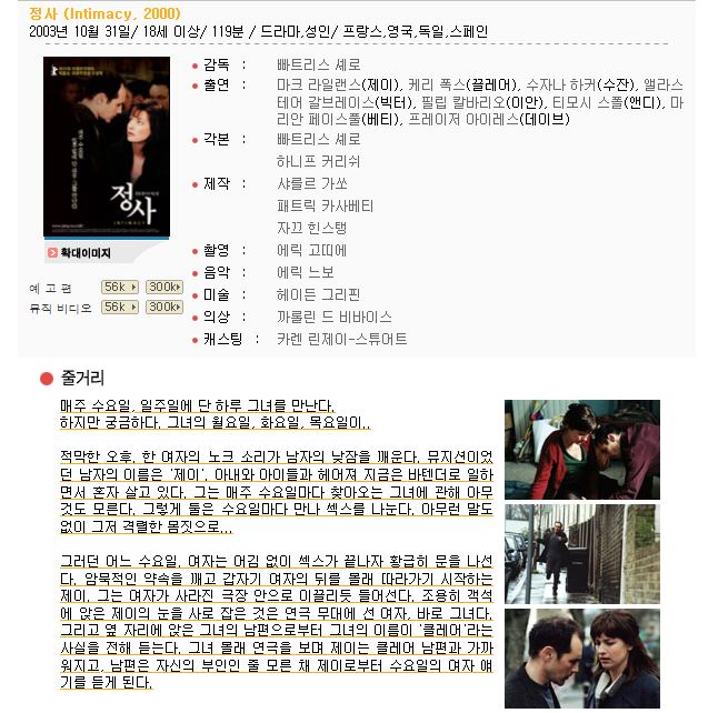 적막한 오후. 한 여자의 노크 소리가 남자의 낮잠을 깨운다. 뮤지션이었던 남자의 이름은 '제이'. 아내와 아이들과 헤어져 지금은 바텐더로 일하면서 혼자 살고 있는 그는 매주 수요일마다 찾아오는 그녀에 관해 아무것도 모른다. 그렇게 둘은 수요일마다 만나 섹스를 나눈다. 아무런 말도 없이 그저 격렬한 몸짓으로... 그러던 어느 수요일. 여자는 어김 없이 섹스가 끝나자 황급히 문을 나선다. 암묵적인 약속을 깨고 갑자기 여자의 뒤를 몰래 따라가기 시작하는 제이. 그는 여자가 사라진 극장 안으로 이끌리듯 들어선다. 조용히 객석에 앉은 제이의 눈을 사로 잡은 것은 연극 무대에 선 여자, 바로 그녀다. 그리고 옆 자리에 앉은 그녀의 남편으로부터 그녀의 이름이 '클레어'라는 사실을 전해 듣는다. 그녀 몰래 연극을 보며 제이는 클레어 남편과 가까워지고, 남편은 자신의 부인인 줄 모른 채 제이로부터 수요일의 여자 얘기를 듣게 되는데… 점점 더 그녀의 매혹에 빠져드는 ‘제이’ 그러나 어느 날 정해진 시간에 그녀가 오지 않자, 그녀의 존재가 자기를 미치게 하고 있음을 깨달은 남자는 여자의 뒤를 밟기 시작하는데…