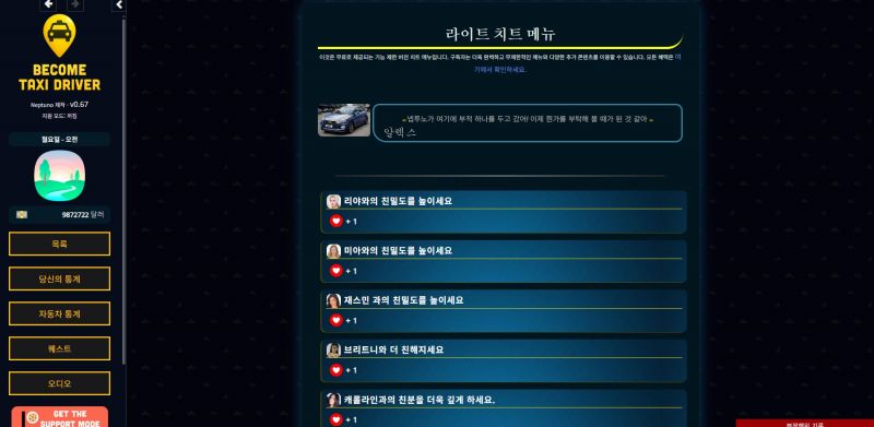 것이 바뀝니다. 그녀는 베테랑 택시 운전사로, 당신을 편안한 삶에서 벗어나게 하고 택시 운전의 모든 것을 가르쳐줍니다.