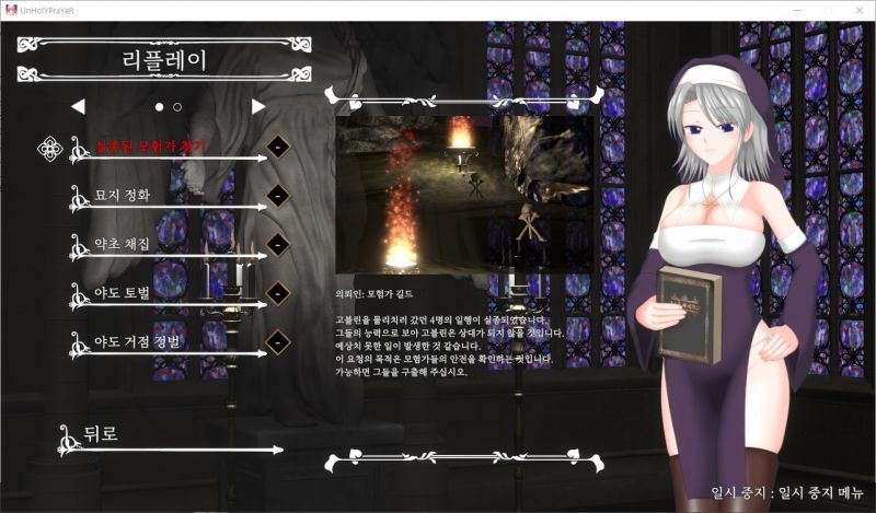 당신은 교회를 위해 일하는 수녀로서, 괴물과 언데드에 맞서 싸우며 그들을 정화하려고 노력합니다.