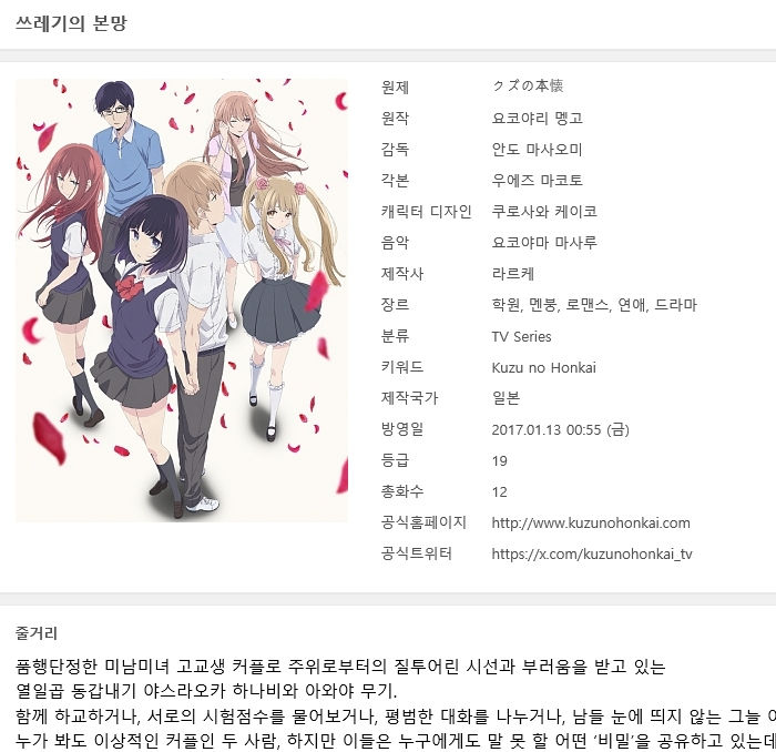[19완결] 쓰레기의 본망 01-12 [일상 로맨스 드라마]
