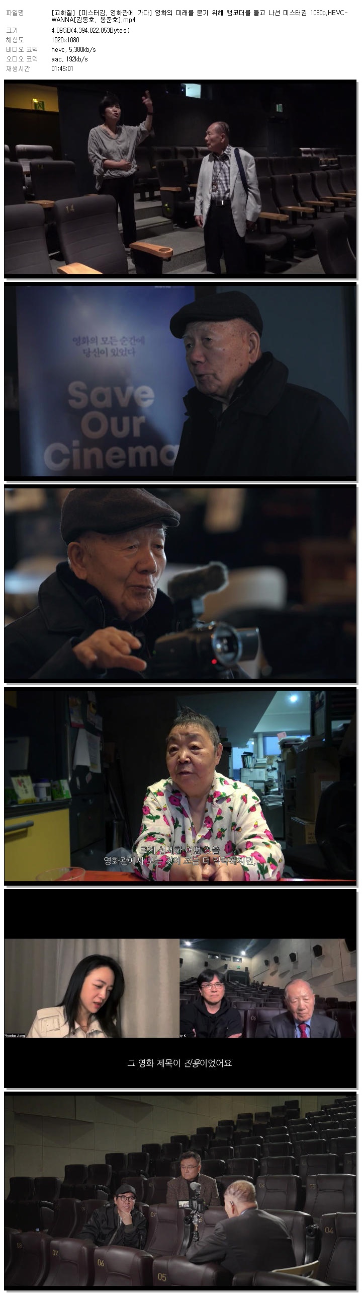 [고화질] [미스터김, 영화관에 가다] 영화의 미래를 묻기 위해 캠코더를 들고 나선 미스터김 1080p.HEVC-WANNA[김동호, 봉준호]