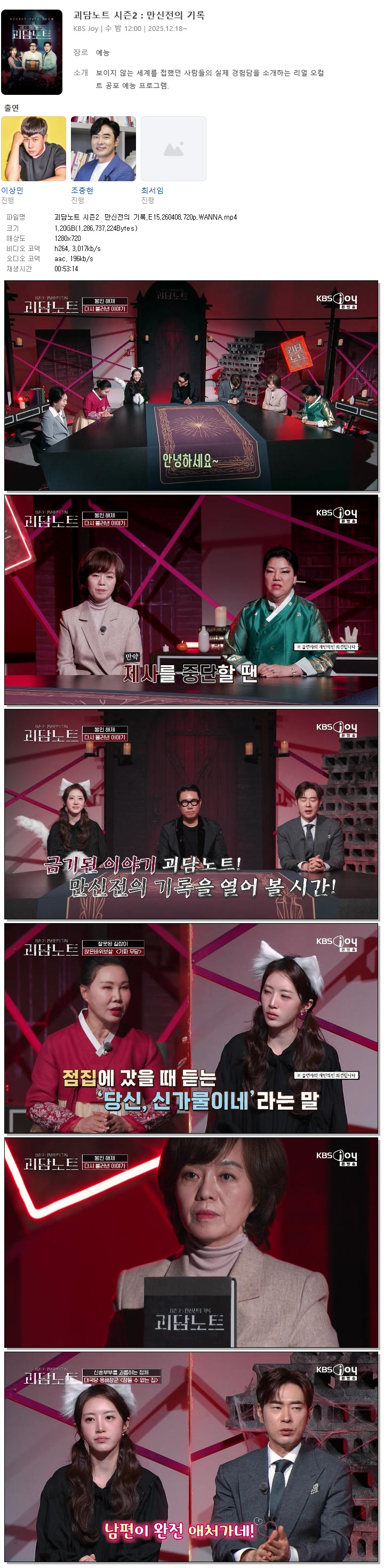 [KBS JOY] 괴담노트 시즌2 만신전의 기록.E15.260408.720p.WANNA[이상민, 조충현].mp4