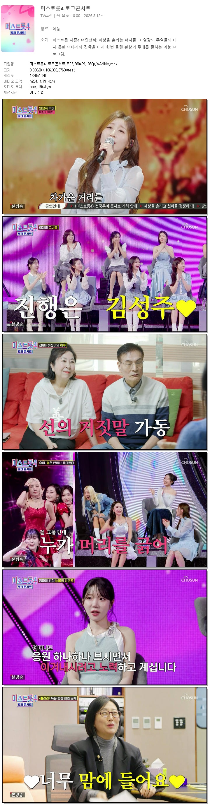 [TV조선] 미스트롯4 토크콘서트.E03.260409.1080p.WANNA[장윤정, 허찬미]