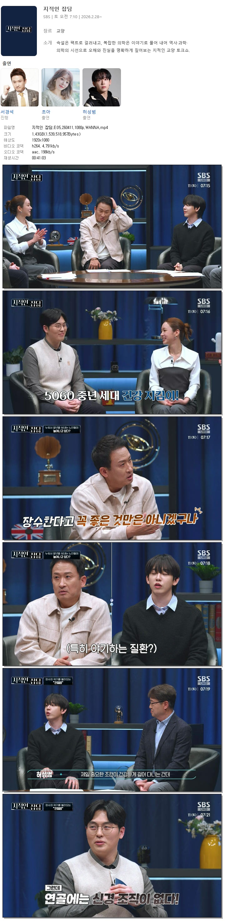 [SBS] 지적인 잡담.E05.260411.1080p.WANNA[서경석, 초아]