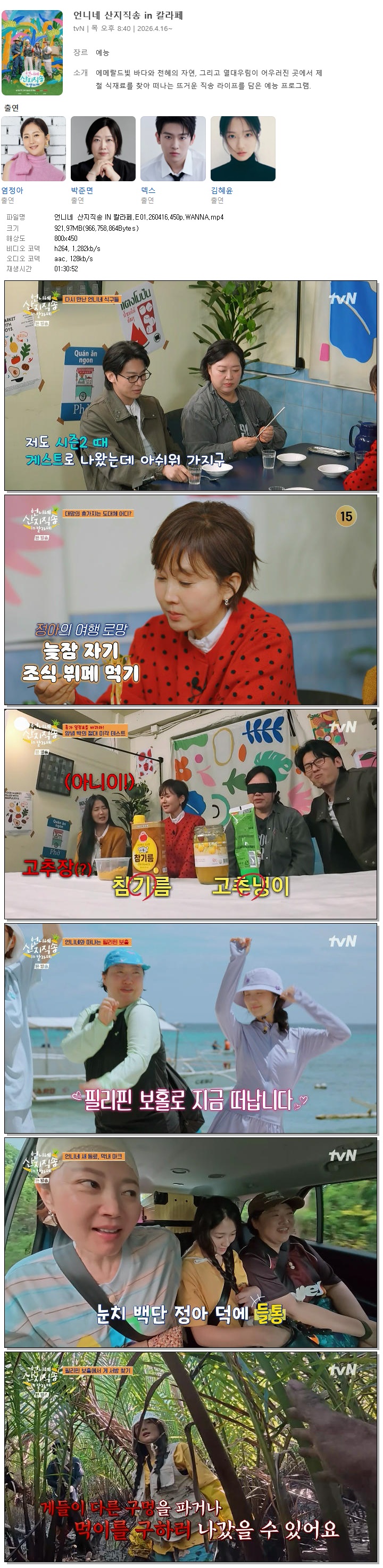 [TVN] 언니네 산지직송 IN 칼라페.E01.260416.450p.WANNA[염정아, 덱스].mp4