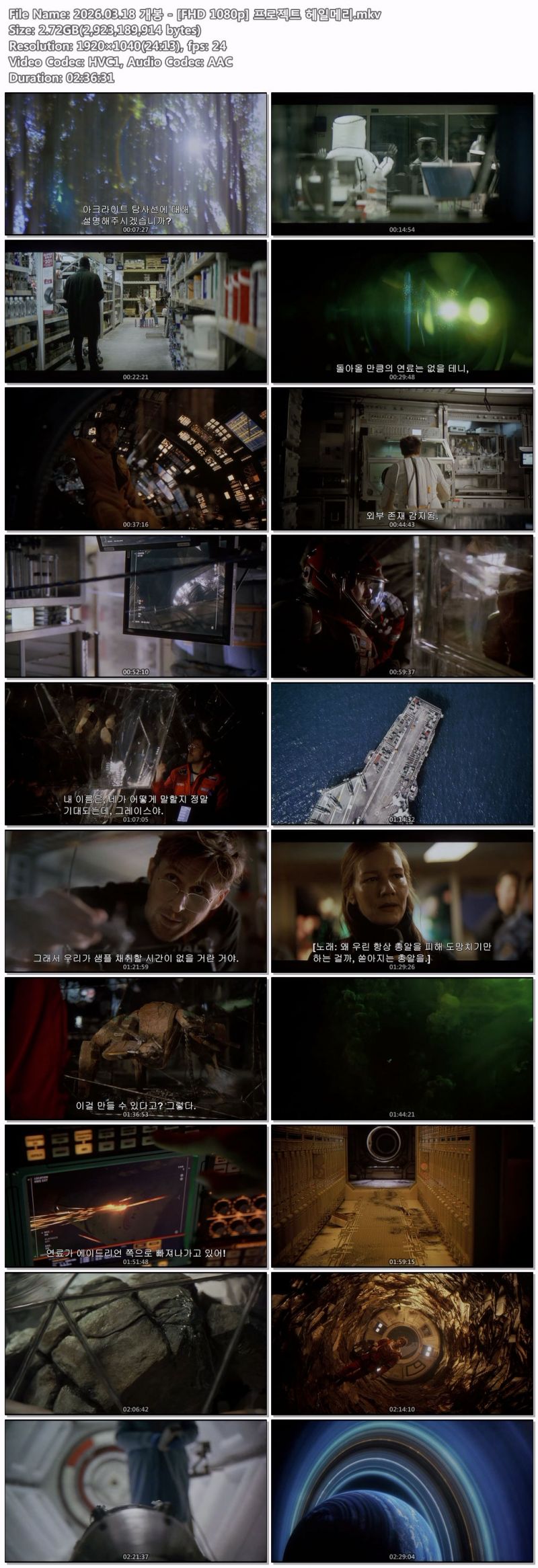 26년 3월개봉 - [프로젝트 헤일메리] FHD 1080p