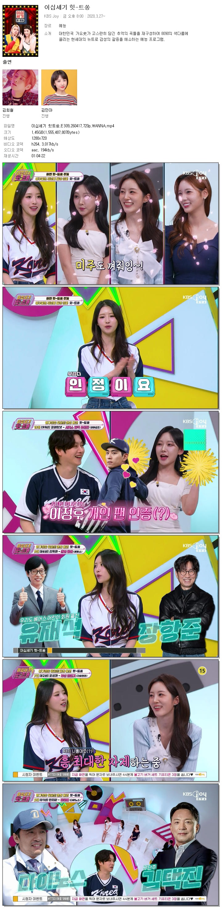 [KBS JOY] 이십세기 힛트쏭.E309.260417.720p.WANNA[김희철, 미주].mp4