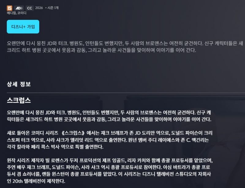 [미드] 스크럽스 시즌1.9부작완결.Scrubs.2026.1080p.한글자막