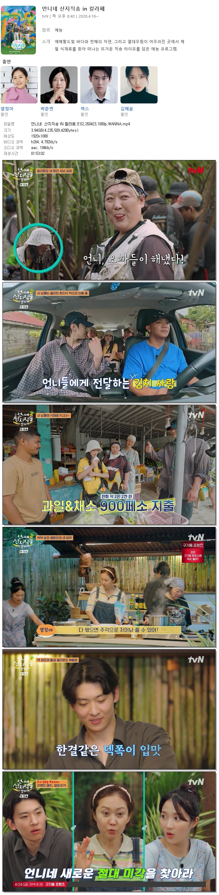 [TVN] 언니네 산지직송 IN 칼라페.E02.260423.1080p.WANNA[염정아, 덱스]
