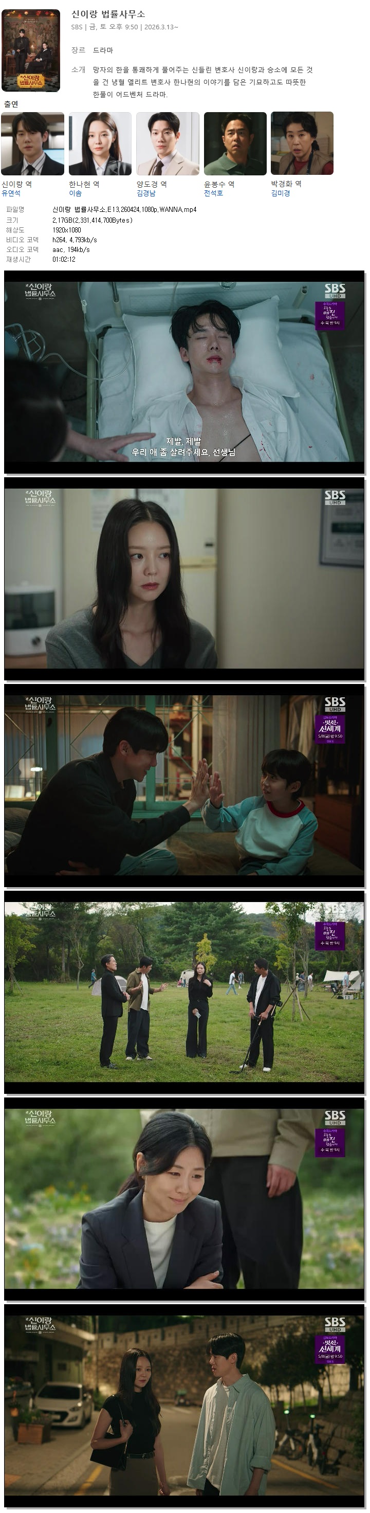 [SBS] 신이랑 법률사무소.E13.260424.1080p.WANNA[유연석, 이솜]