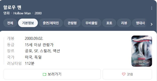 미국 정부는 최고의 과학자들을 구성해 '할로우 맨'(투명 인간) 실험에 대한 일급 비밀 프로젝트를 추진한다. 그리고 마침내 카인은 실험용 고릴라를 그 자리에서 사라지게 하는데 성공한다. 하지만 이 실험 결과에 도취된 카인은 미국 국방성의 명령을 어기고 바로 자신에게 투명 인간 실험을 강행한다. 살과 뼈가 차례로 약물에 의해 타들어가고, 카인은 동료들이 지켜보는 가운데 실험대 위에서 흔적없이 사라지고 만다. 뒤늦게 이 일이 엄청나게 위험스러운 도박임을 깨달은 카인의 상관이자 애인인 린다는 매튜와 함께 그 약의 효능을 없애려고 시도하지만 실패한다. 게다가 투명 인간이 된 카인은 깊숙한 곳에 숨어있던 그의 욕망과 과대망상이 분출되며, 이 새로운 힘에 급속도로 취하게 된다. 보이지 않는 존재로 전지전능하게 변해버린 투명 인간 카인. 그는 그의 독선에 지친 애인 린다가 동료 매튜와 관계를 갖는 현장을 목격하게 되는 등 보지 말아야할 장면까지도 모두 맞닥뜨리면서 위험스런 존재가 되어간다. 평소 흠모하던 옆집 여인을 강간하는 등 온갖 악행을 저지르고, 동료들이 점점 포악해진 케인에 대하여 상부에 보고서를 제출하려 하자, 그는 마침내 이 동료들을 몰살할 계획을 세우고, 이제 이들 사이에 죽음의 게임이 시작된다.