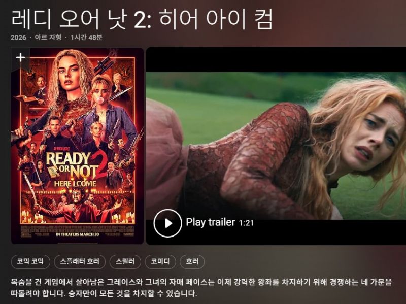 [영화-공포 19] 레디 오어 낫 2 - 히어 아이 컴.2026.1080p.한글자막