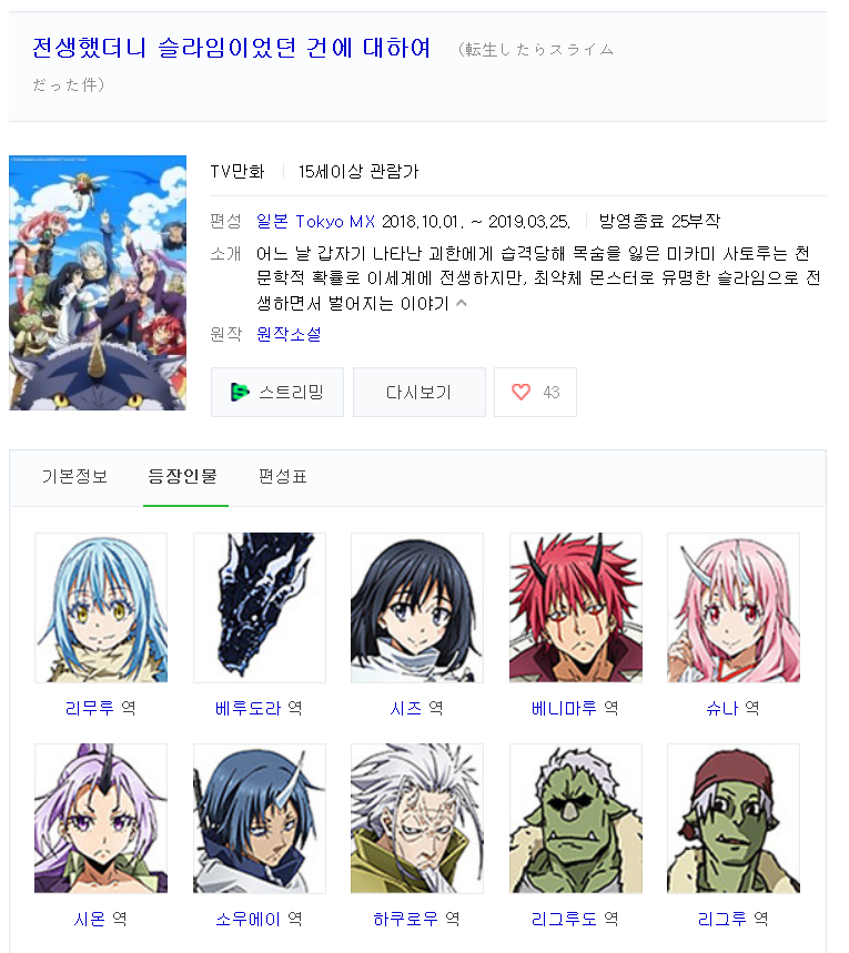 전생했더니 슬라임이었던 건에 대하여 1기 (2018년)1~25화[완결]-한글자체자막