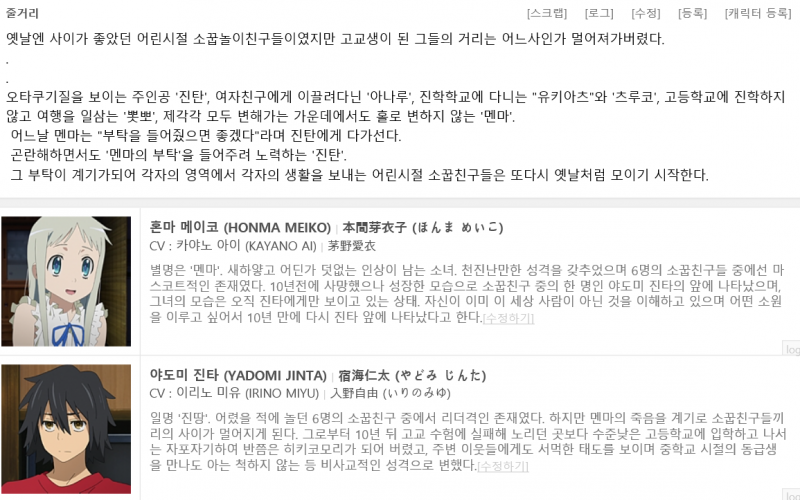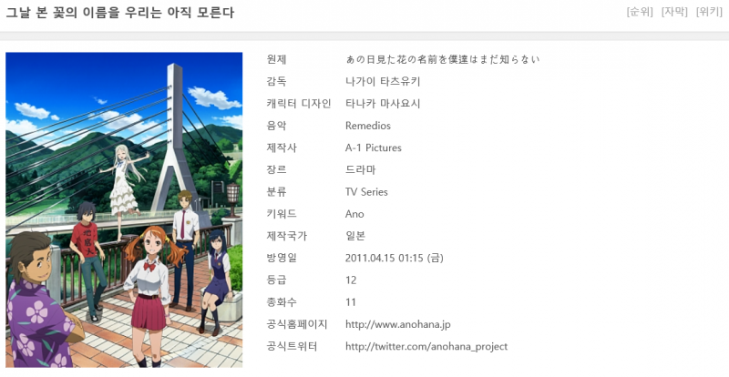 그날 본 꽃의 이름을 우리는 아직 모른다 (2011년)1~11화[완결]
