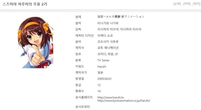 [스즈미야 하루히의 우울 2기 완결(총14화)] 한글자막.HD720p