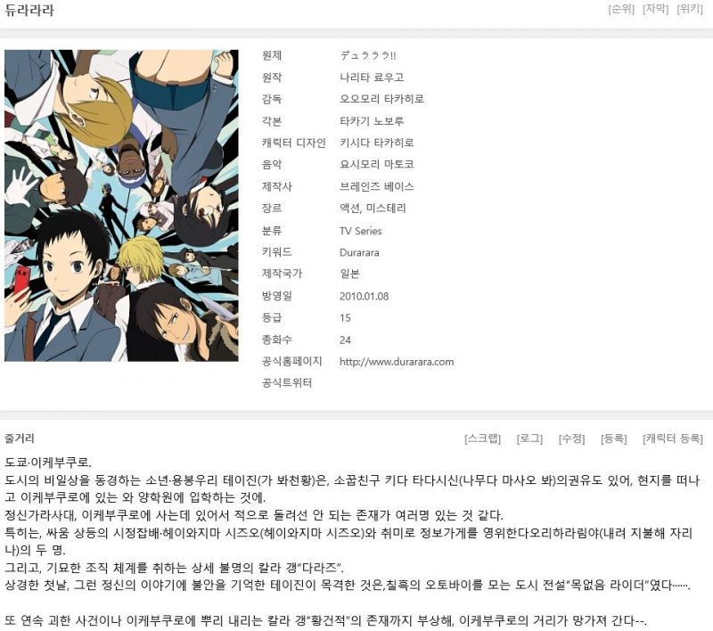 [듀라라라 1기 완결(총26화)] 한글자막.HD720p