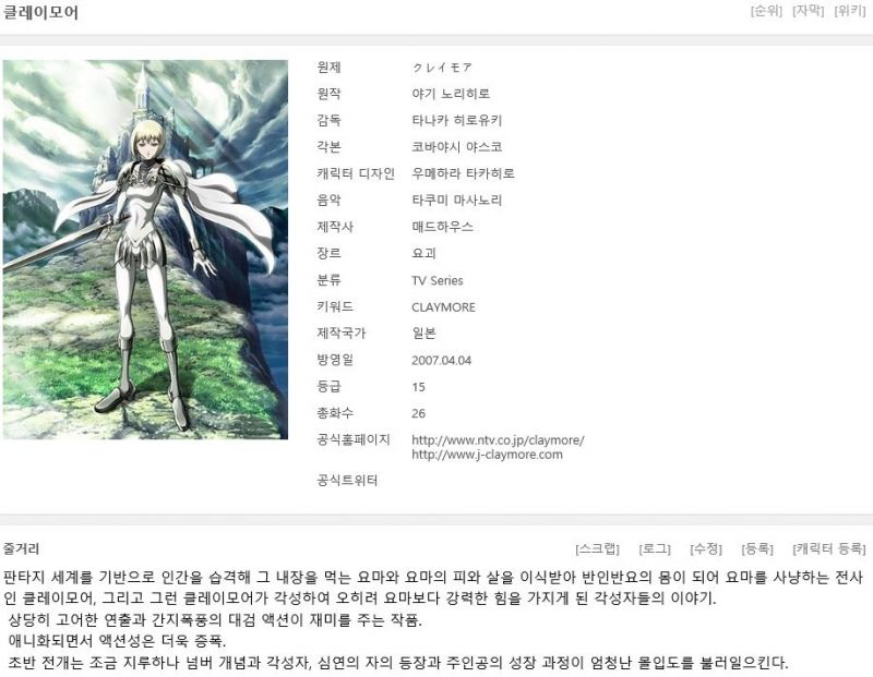 [클레이모어 완결(총26화)] 한글자막.HD720p