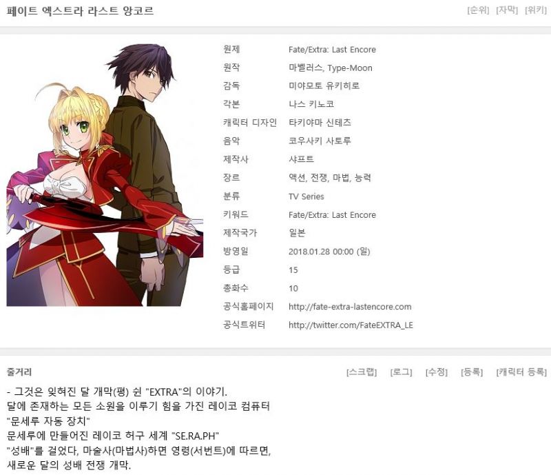 [페이트 엑스트라 라스트 앙코르 완결(총13화)] 한글자막.HD720p