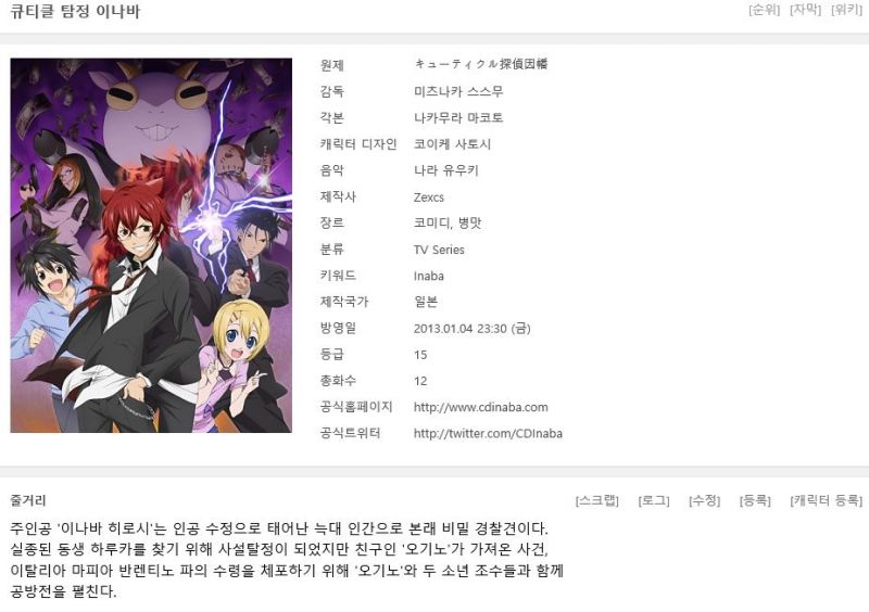 [큐티클 탐정 이나바 완결(총12화)] 한글자막.HD720p