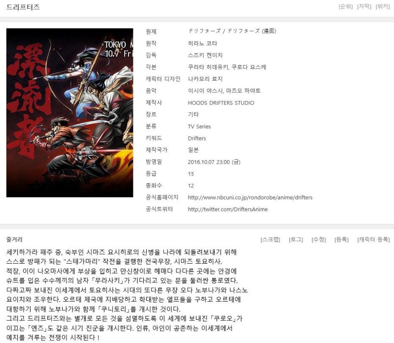 [드리프터즈 완결(총12화) OVA포함] 한글자막.HD720p