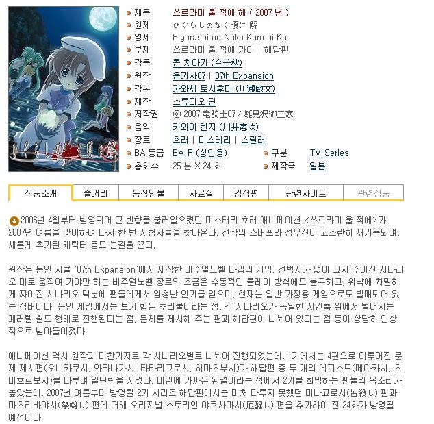 [쓰르라미 울적에 2기(해답편) 완결(총24화)] 한글자막.HD720p