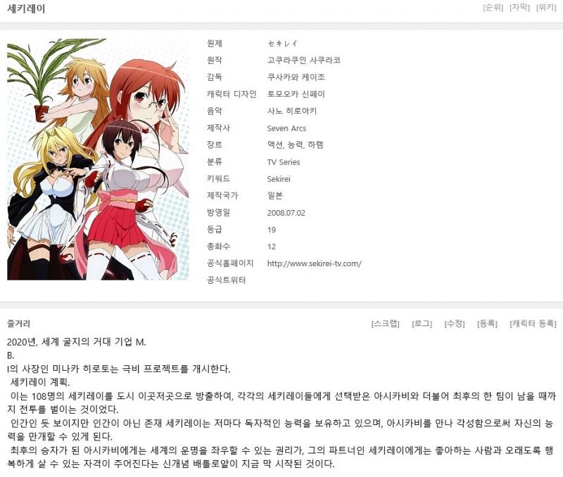 [세키레이 1기 무수정판 완결(총12화) ova포함] 한글자막.HD720p
