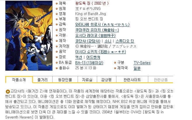 [왕도둑 징 완결(총13화) OVA포함] - 한글자막