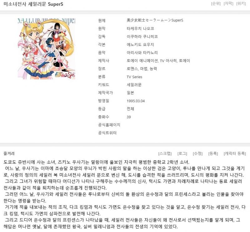 [미소녀전사 세일러문 4기 01-20화] - 한글자막