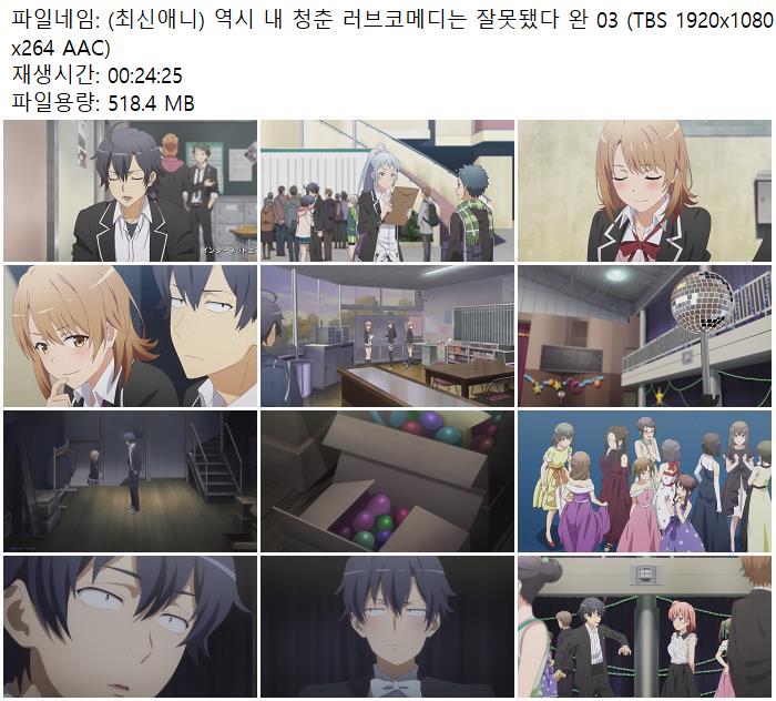 (최신애니) 역시 내 청춘 러브코메디는 잘못됐다 완 03 (TBS 1920x1080 x264 AAC)