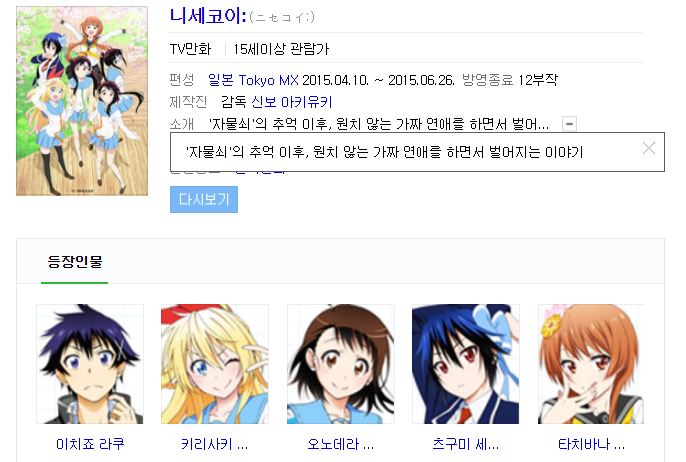 (완결애니) 2015 2분기 니세코이 2기 - 12부작 연애 로맨스 코메디 일상