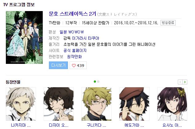 (완결애니) 2016 4분기 문호 스트레이독스 1기 - 12부작 액션 판타지