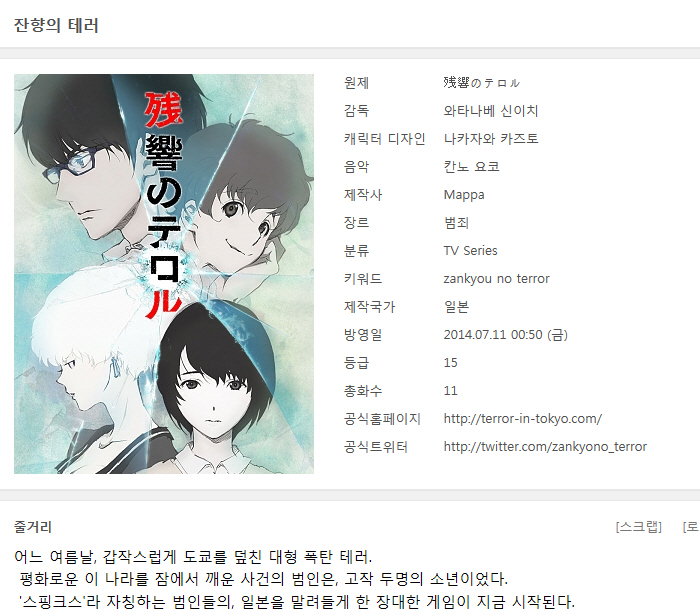 [추천애니] 잔향의테러 01-11 [완결]