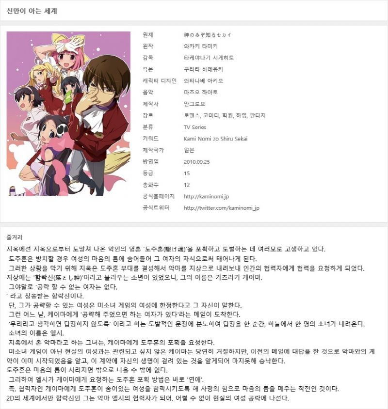 [추천애니] 신만이아는세계 01-02 [완결]