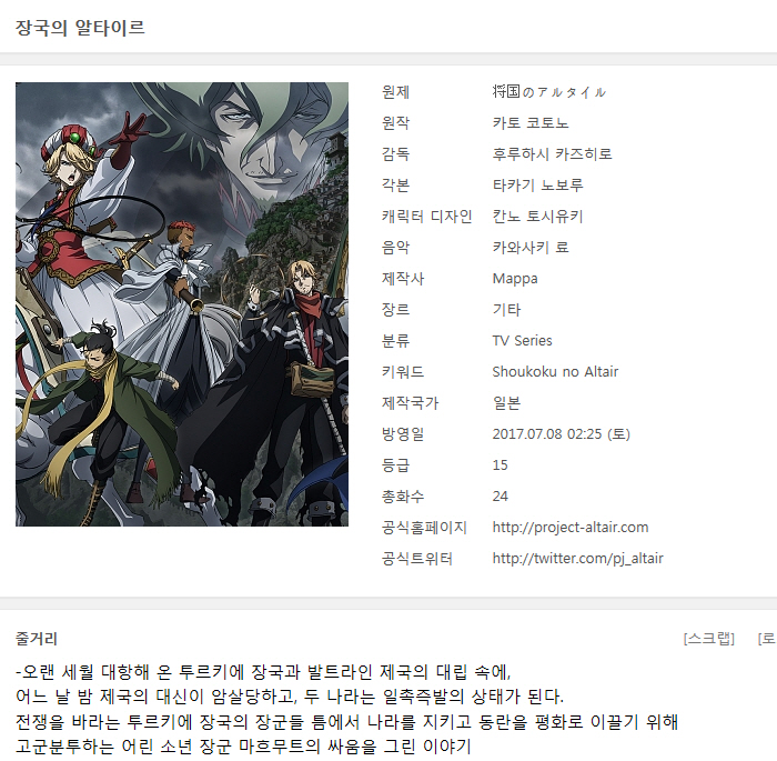 [추천 애니] 장국의 알타이르 Shoukoku no Altair 24부작 완결
