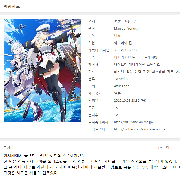 [인생] 벽람항로 [아주르 레인] 01-12완결 -모험 전쟁 메카닉 액션-