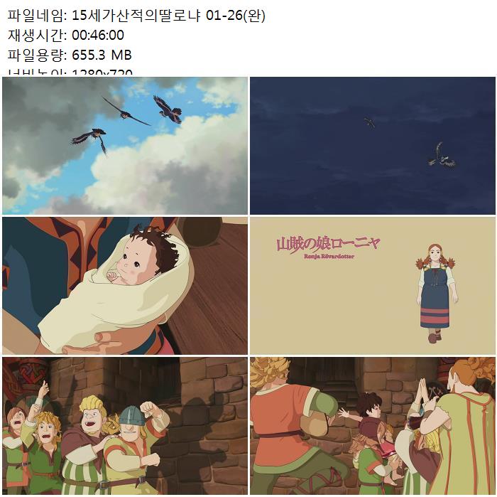[추천 애니] 미야자키하야오 고로 감독. 산적의 딸 로냐 완결 1화-26화