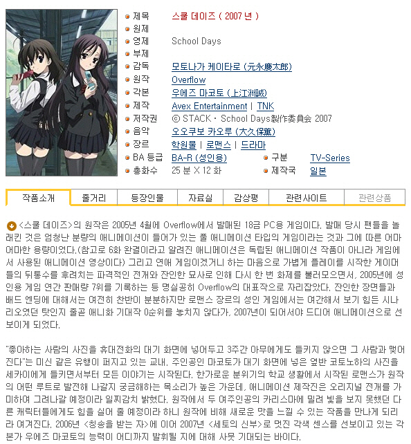 [인생] 스쿨 데이즈 01-12완결 [OVA 포함] -잔인한 로맨스 드라마-