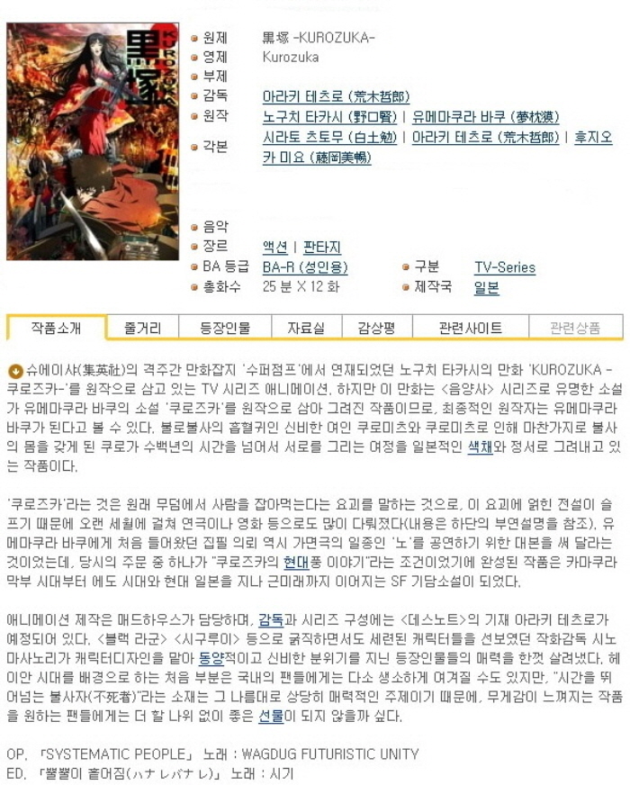 [추천애니] 불로불사 흡혈귀 흑총 01-12 [완]