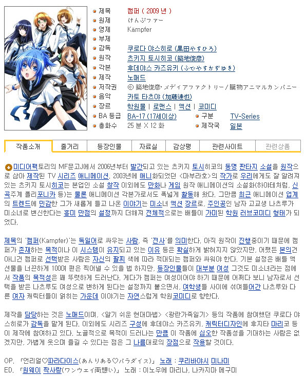 [추천애니] 캠퍼 01-12 [완]