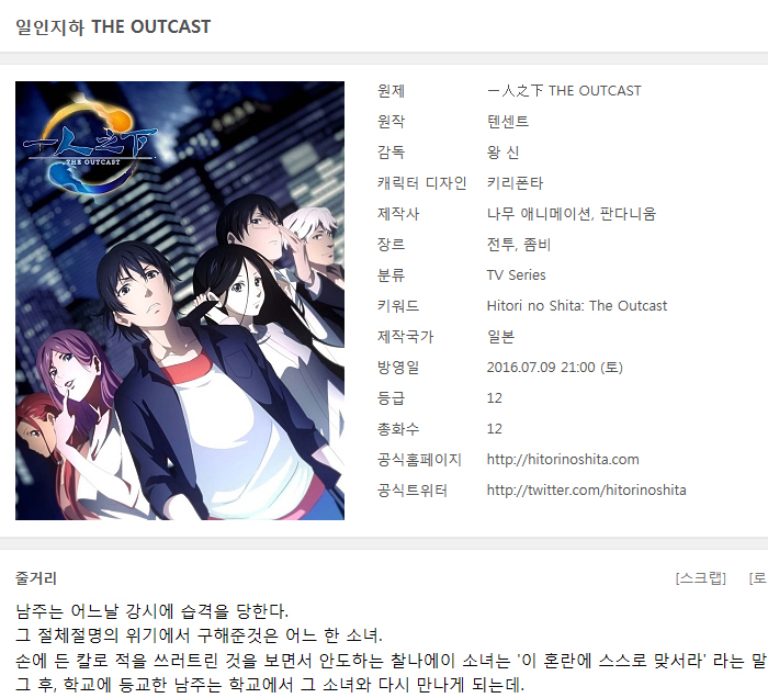 [추천애니] 일인지하 아웃캐스트 01-12 [완]