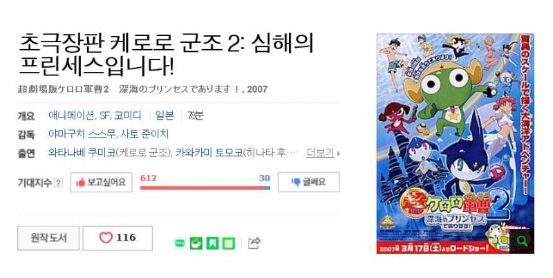 개구리 중사 케로로 극장판 2기-심해의 프린세스입니다 (2007년) 우리말,일어 1080p