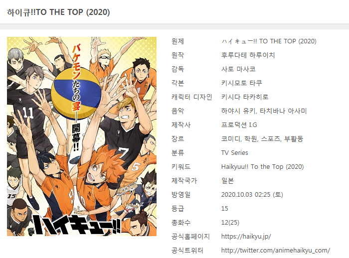 [인생] 하이큐 [4기] 01-25완결 -스포츠 배구 코믹 드라마-